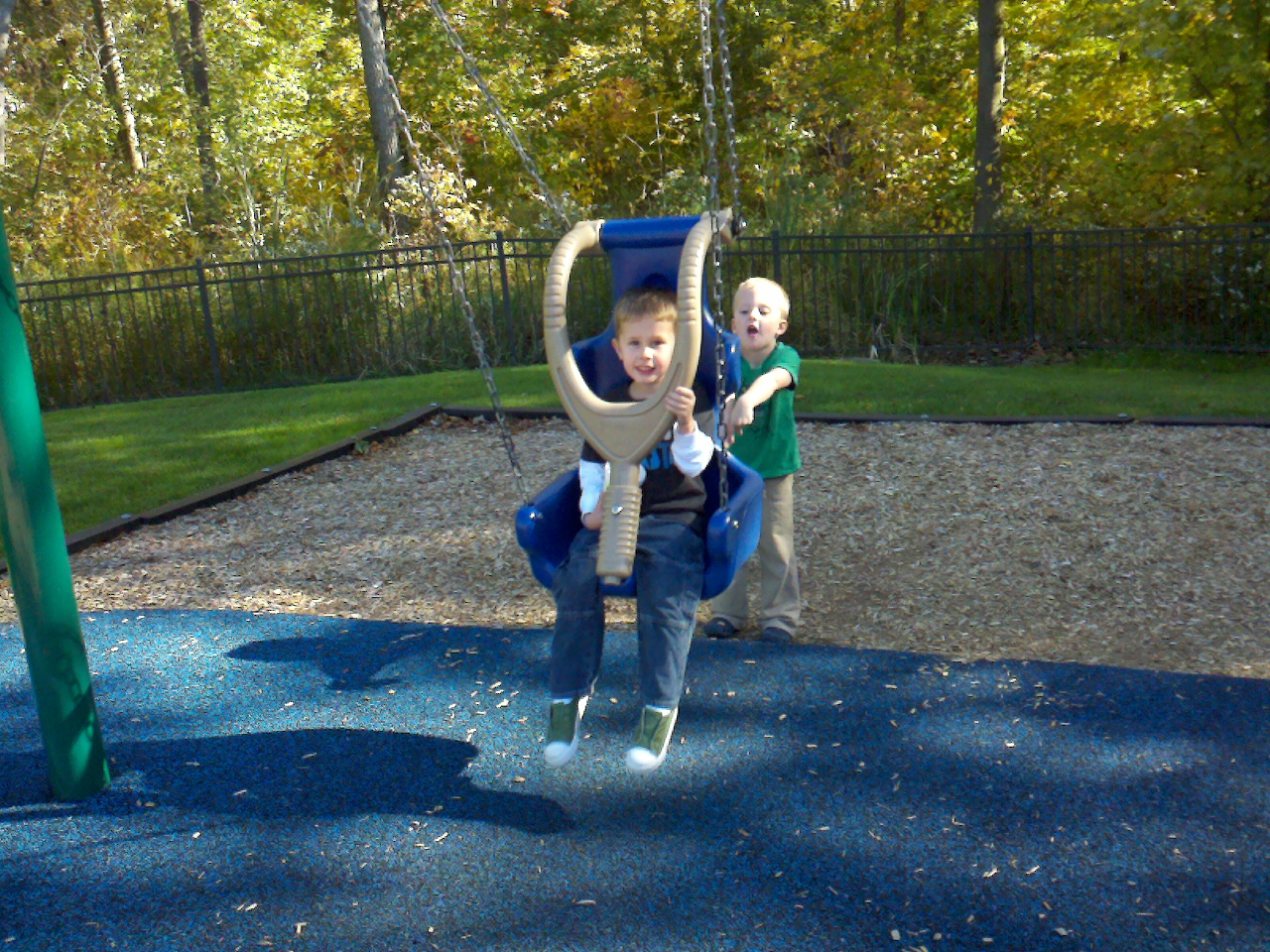 Mostly we go to parks. As long as it’s reasonably warm and/or sunny, we try to get outside. Sometimes this means going while it still cold enough to require winter clothing, but as long as there’s no snow or mud, we’ll go. We take what we can get in Michigan.
