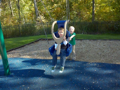 But a treadmill seems a bit dangerous considering Jack, and often Liam, still runs into walls; large, stationary walls that have been there all their lives. I’d imagine having to explain treadmill burns would grow a bit tedious very quickly. But the boys still need to run, see: endless amounts of energy. So we leave the house.