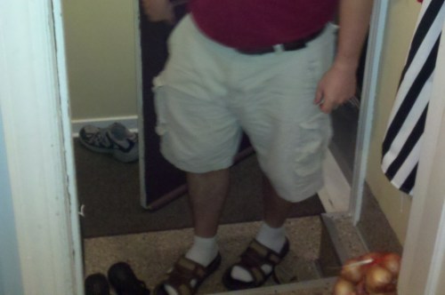 But I believe that more than anything, Simon will hate my sharing the photo below with you. I took this almost a year ago and have been saving it for a special occassion. Simon came home from work one night, took off his shoes and then had to run back outside for something so he slipped on his sandals over his socks. And while I am not a fashion snob or anything close, this is one combination I cannot get on board with, so I waited inside with my camera and took a picture when he came back in. I swore I deleted it (sorry honey, I lied) and I believe he’s forgotten about it, until now…
