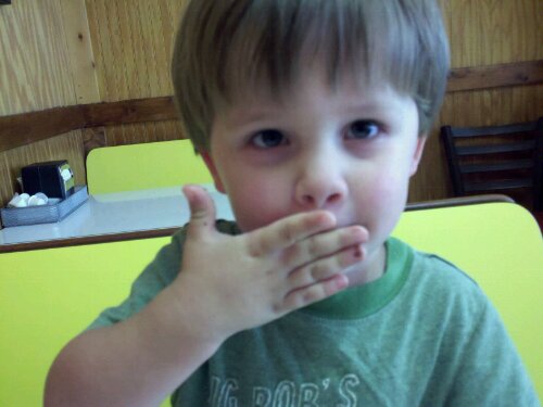 And don’t get me started on where he picked up that word – not that I would place any blame – but if I were to give you a hint, it would stare with “s” and end with “imon.” [Love you, honey.] From me he’s more likely to learn the word moron, a term I use repeatedly while driving and yet neither of my kids has ever said it.