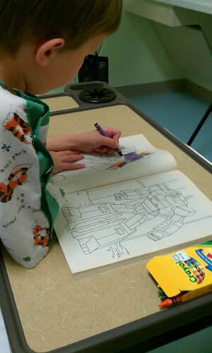• Find a hospital or surgical center with WiFi and bring your smart phone – Simon and I spent our time in while Liam was recovering playing Draw Something, Words with Friends and checking Facebook. Liam wanted the room dark and quiet so TV and reading books were out as options. And since we sat there nearly 3 hours, having WiFi and a smart phone was super handy.