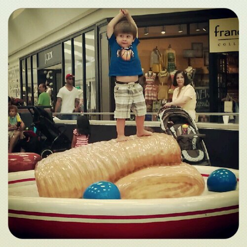 Before Simon left for Oz, we took the kids to the mall to beat the heat and burn off some energy. Who doesn’t love playing on shredded wheat?