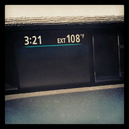 The worst of the heat – this was the temperature registering in my car after work on Friday – it cooled down to 102 after I was on the road for a little bit. Whew.