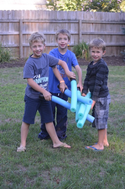 And light saber fighting with his buddies (I think it is adorable how my kids refer to the children of the people in our small group as their own small group).