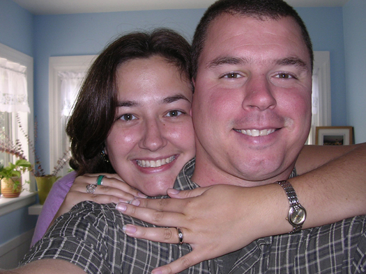 My tricky husband had a big surprise set up for me but to get his plan to work, he had to get me out of the house on that particular Sunday morning, normally this wouldn’t have been a problem as I would be going to church, but I had been sick with tonsilitis that week and wasn’t really feeling up to going to church so he enlisted the help of my BFF Kara (the aforementioned pain wimp) and had her call and arrange for us to go out for coffee after church – ensuring that I would get out of the house for church so I could meet Kara and go for coffee. I knew something was probably up then but I was also feverish so I didn’t think too hard about it. When I got home my surprise was waiting for me (my garage is at the back of the house and on the same level as my basement so when you enter the house, the basement stairs are the first thing you see)… so before me, on those steps, was an array of candles and rose petals and at the top of the stairs was Simon, waiting with a big grin and beautiful ring. I walked upstairs, he proposed and I said yes! And then we ate lunch, which he had picked up from Panera – where we had our first date. And then we called a bunch of people and told them the wonderful news! Happy day (see below)!
