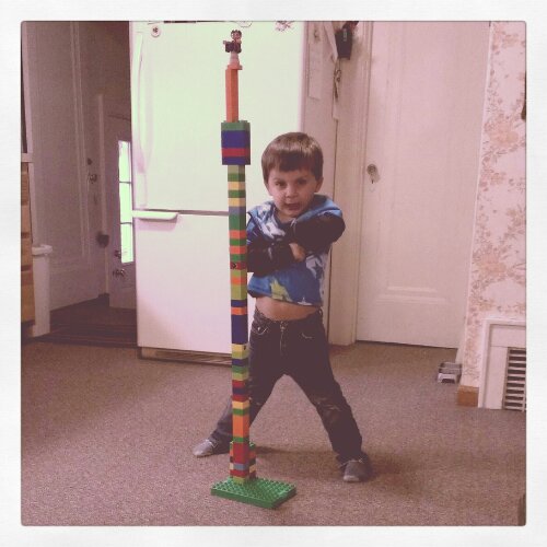 But in less than 24 hours, Jack was back to his normal self, building towers bigger than a preschooler and glaring at the camera. This is the face I got when I asked for a smile.
