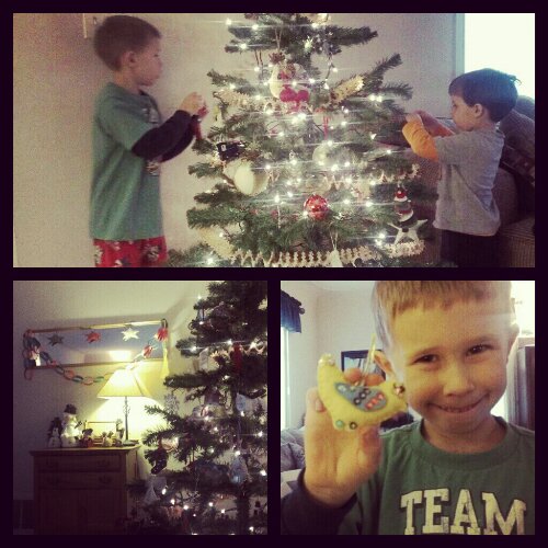 We decorated for Christmas – including our first family tree – the bejeweled bird Liam is holding is his favorite ornament. I’m hoping we can some day find an upgrade tree, one you can’t see through.