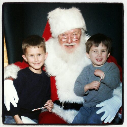 The Santa we visited at the mall was Awesome – he asked good leading questions and repeated what the boys told him so we could hear. We had to wait for a bit while they loaded paper in the printer and he chatted with Liam while Jack looked at him in awe and rubbed his hand along the fur at the edge of his coat. Unfortunately the fur was a little too inappropriately placed so when Jack hit it, it startled Santa a bit as I’m quite certain it was a little too close to a place Santa would not like to be hit. My child molested Santa – not many people can say that.