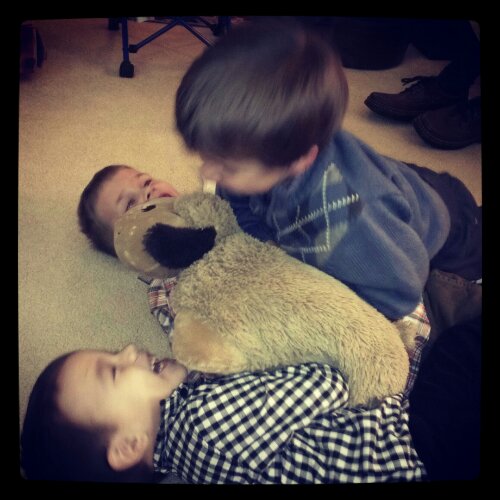 My boys initiated their cousin, Max, into the world of wrestling and jam piles – much fun was had. It, of course, ended in tears.