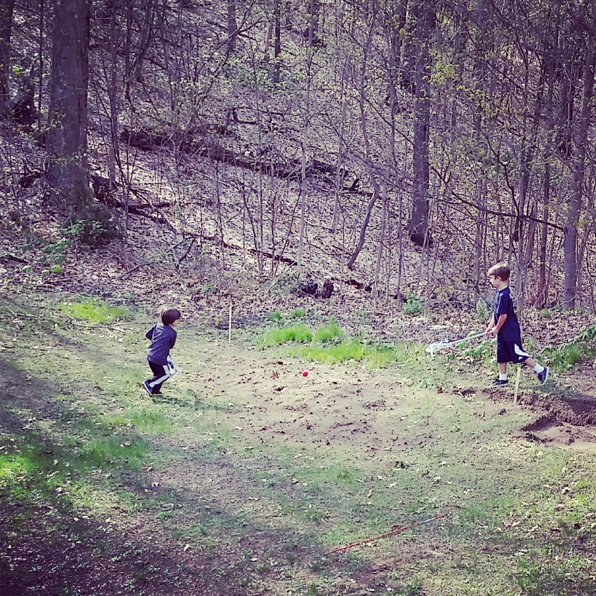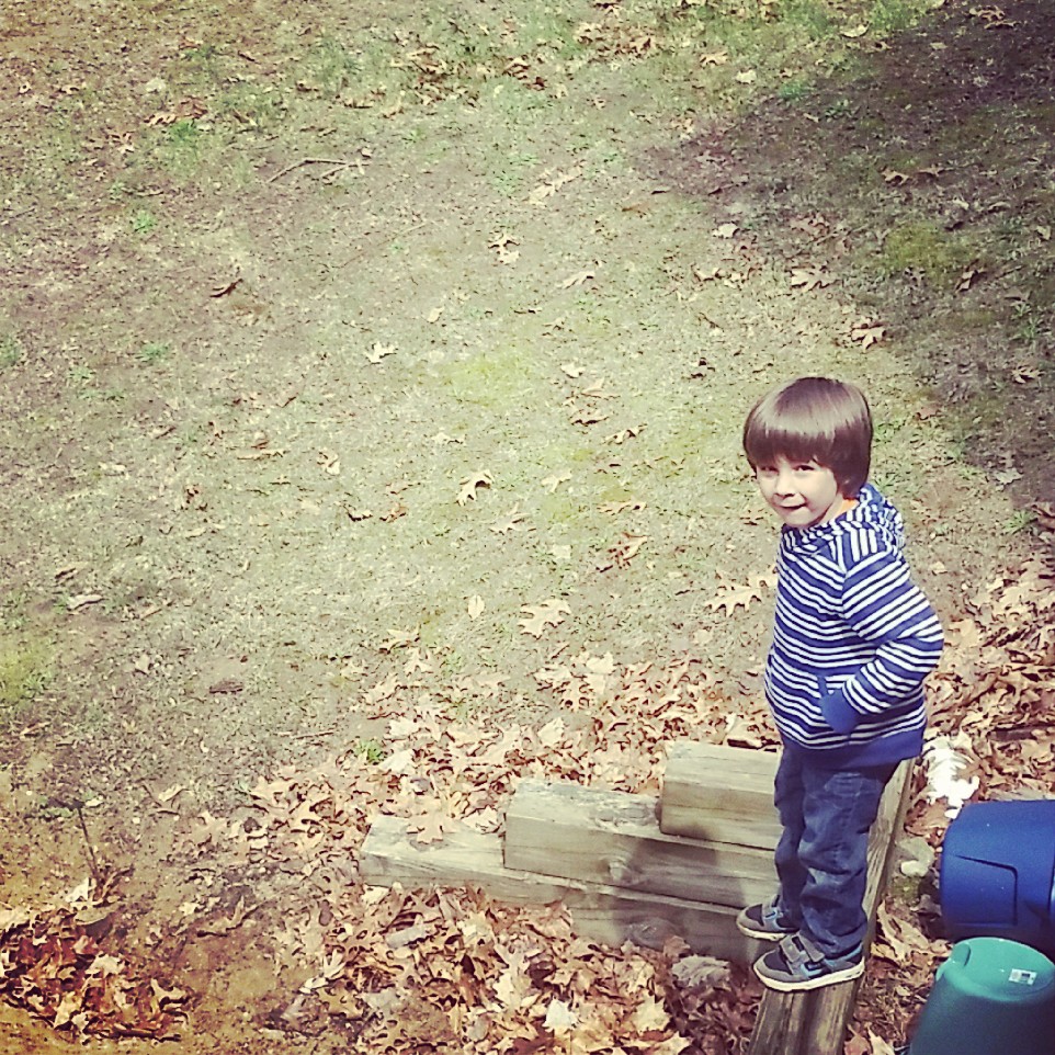 Playing in the spot where there will someday be a playset.
