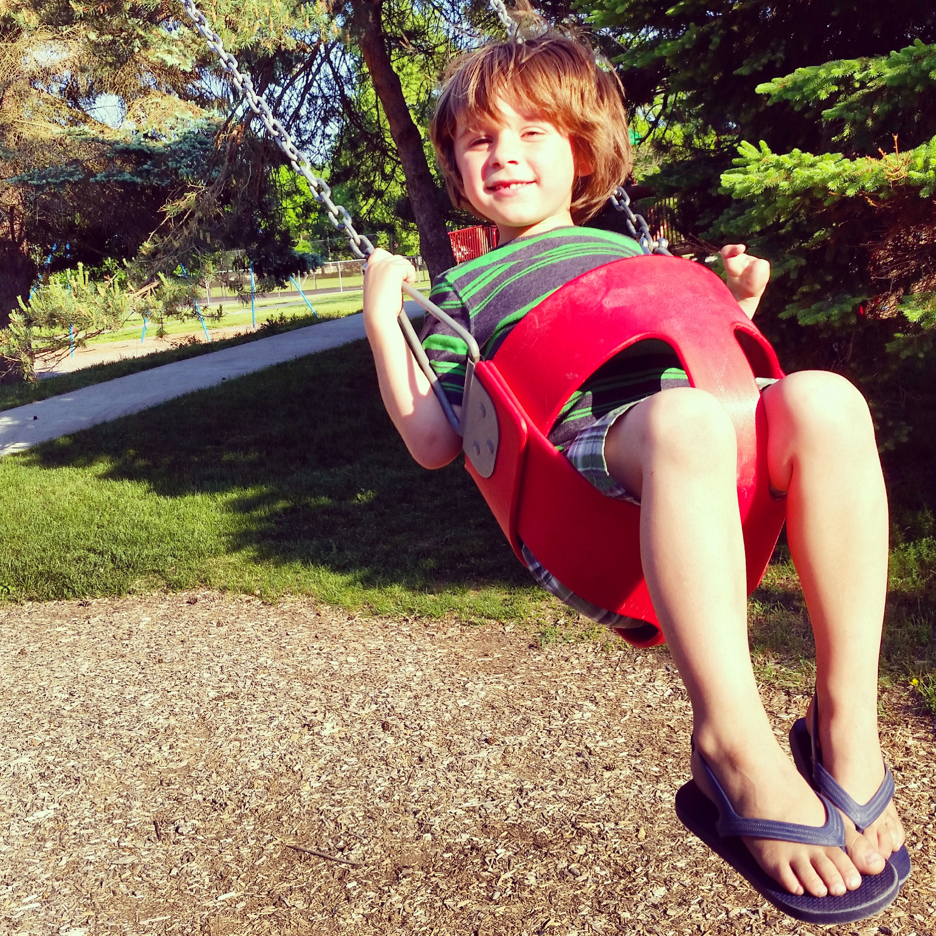 My happy camper still fits in the baby swings.