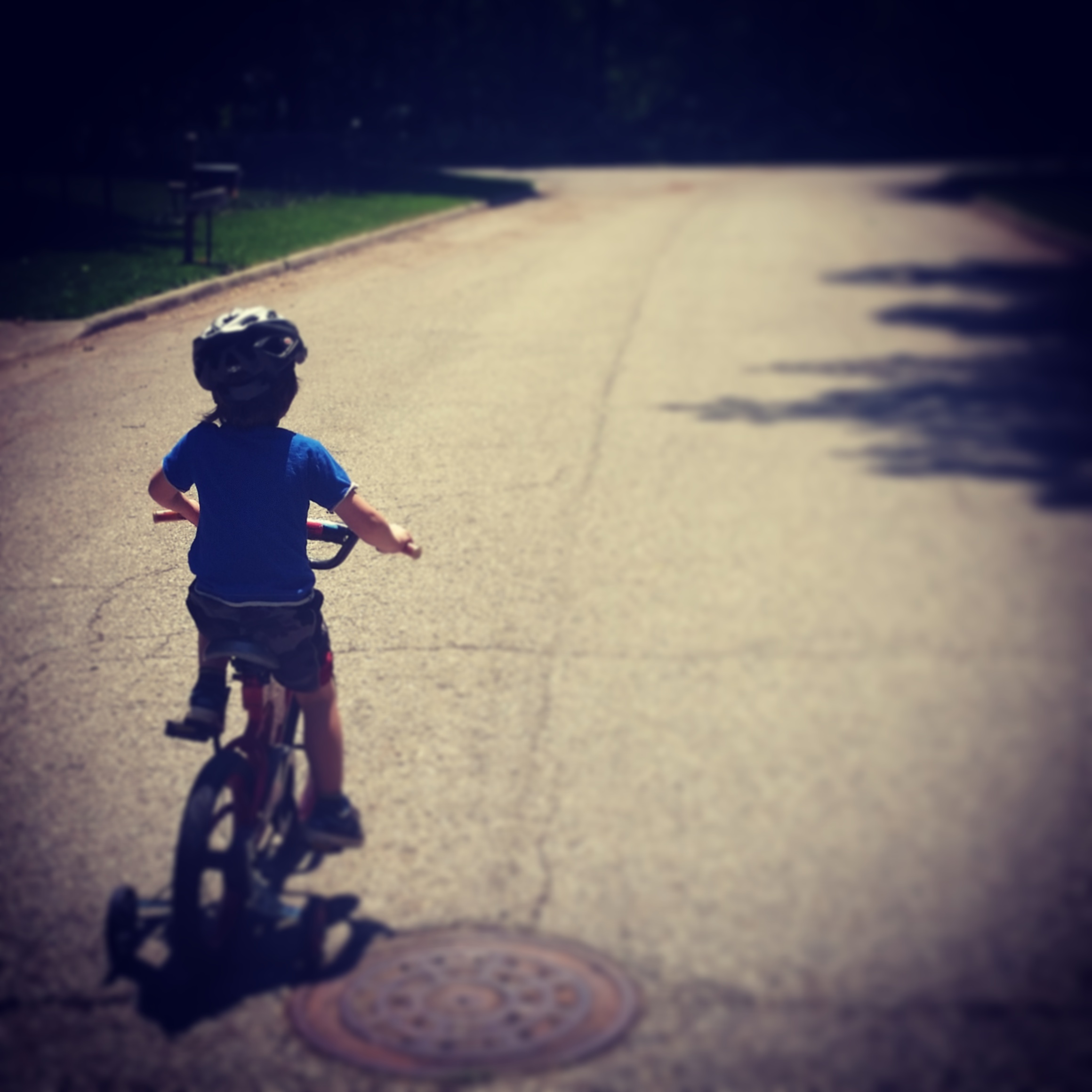 Jack’s third favorite pasttime is riding his bike – though he yells at me the entire way from our driveway to this flat street in our neighborhood to “HOLD ONTO ME. DON’T LET GO. WHY ARE YOU LETTING GO? HELP!” It’s “fun.”