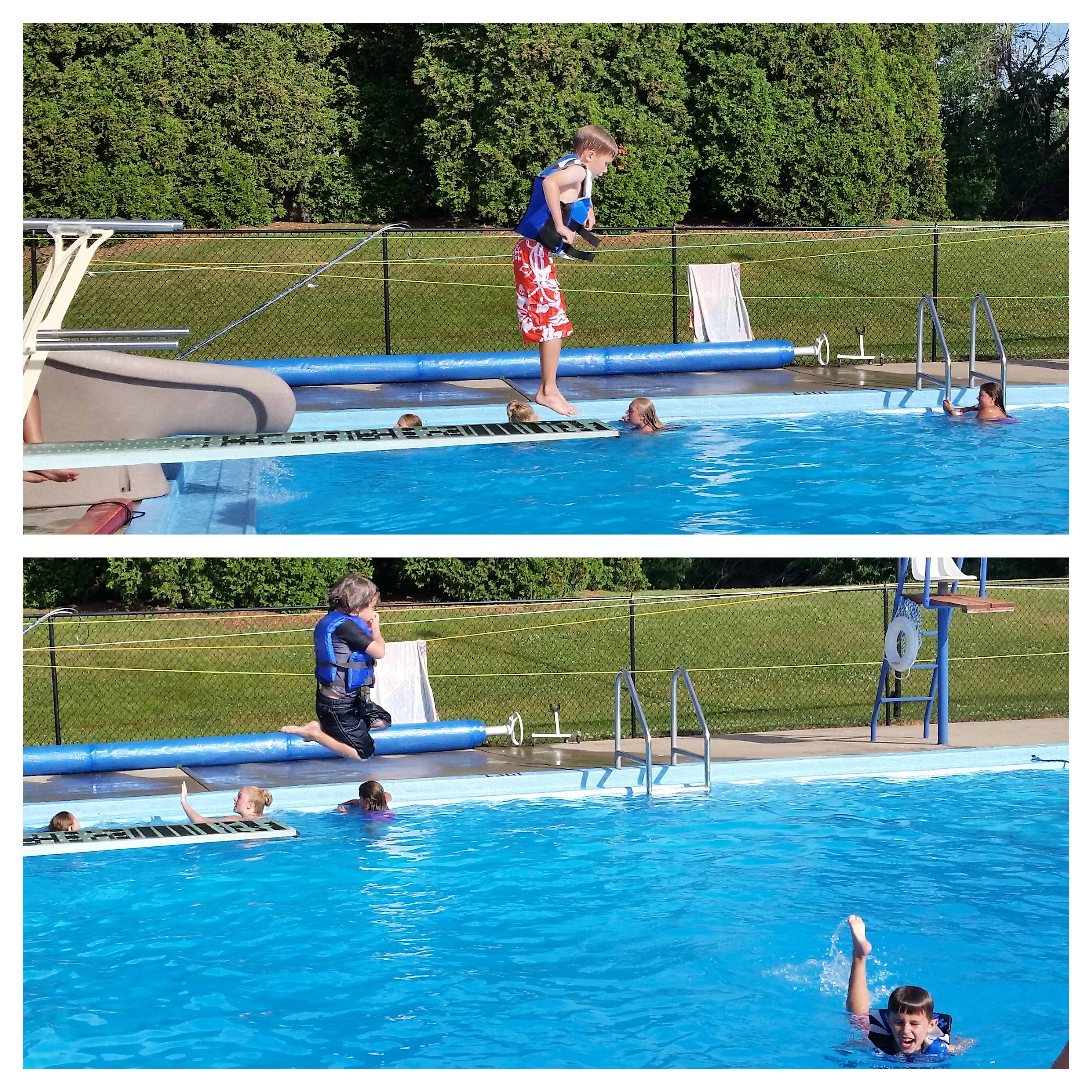 We tagged along with friends who have a pool membership and my boys showed no fear in jumping off the diving board for the first time. Hours of fun = hours of sleep.