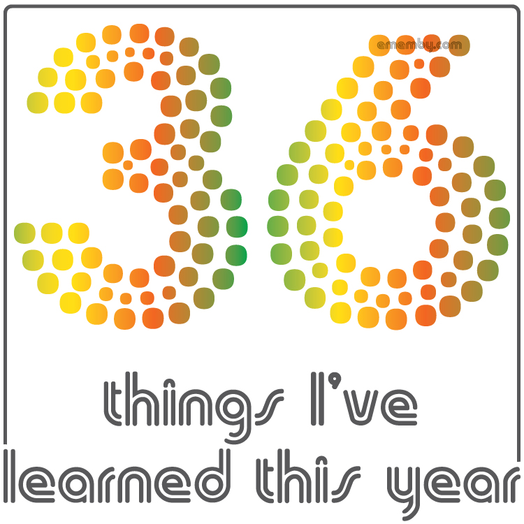 If you read yesterday’s post (or Facebook reminded you), you know that today is my birthday. To celebrate, I’m sharing with you 36 things I learned this past year (or thereabouts). I realize that it might be more appropriate to list 35 things I learned in my 35th year, I’ve technically been alive 36 years.
