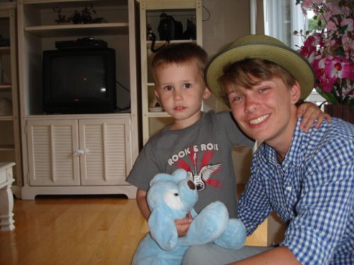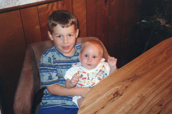 But that’s not Liam, it’s my nephew, Andrew, holding my other nephew, Mitch, way back in the 90s (so very long ago). Apparently Liam does take after my family, just not me as much as my nephew (see below of Andrew and Liam last fall – at least we can see that Liam will still be handsome when he grows up).
